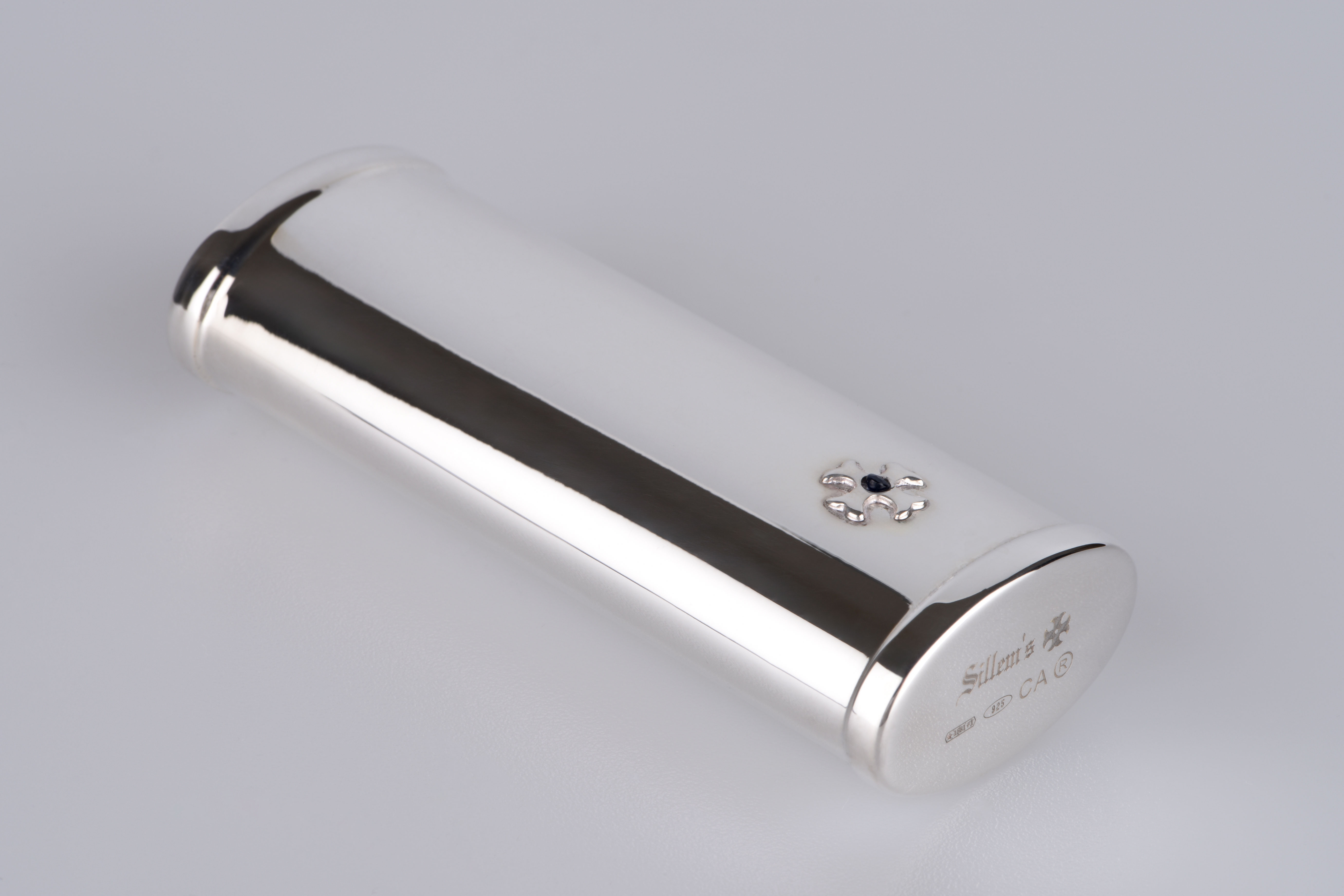Mit ihren kompakten Maßen von 8 x 2,7 cm passt diese Hülle perfekt in jede Tasche und begleitet Sie diskret und elegant durch den Alltag. Das Gewicht von 52 Gramm verleiht ihr eine angenehme Haptik – solide und doch leicht, wie es nur echtes Sterling Silber schaffen kann.