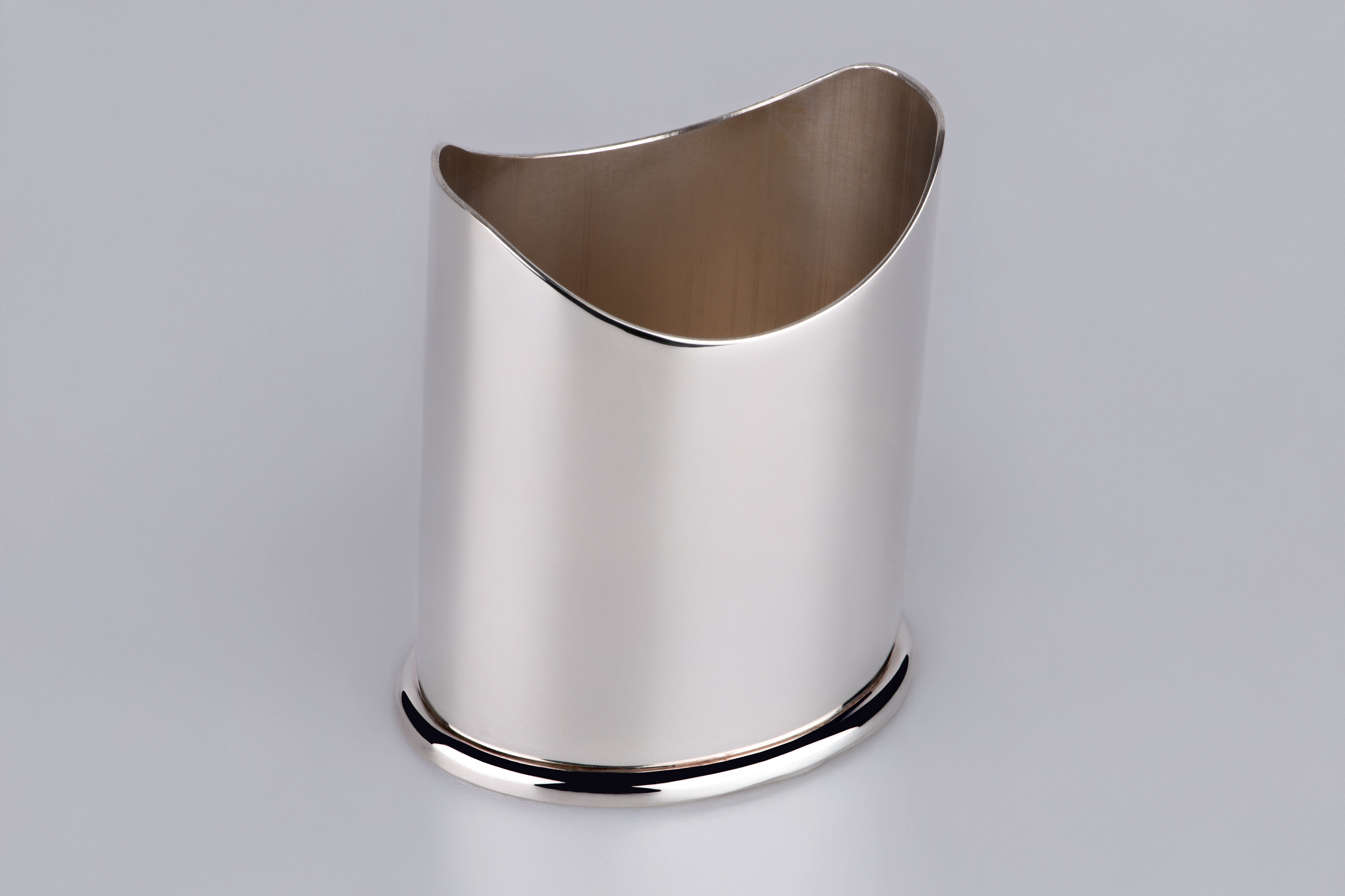 Gefertigt aus hochwertigem, versilbertem Metall und mit einem Gewicht von 121 Gramm liegt dieser Köcher fest auf jedem Schreibtisch – ein Fels in der Brandung der täglichen To-do-Listen. Die klaren Linien und die edle Schlichtheit des Designs – 8 x 7 x 5 cm kompakte Eleganz – machen ihn zu einem stilvollen Begleiter in Büros, Ateliers oder heimischen Schreibzimmern.