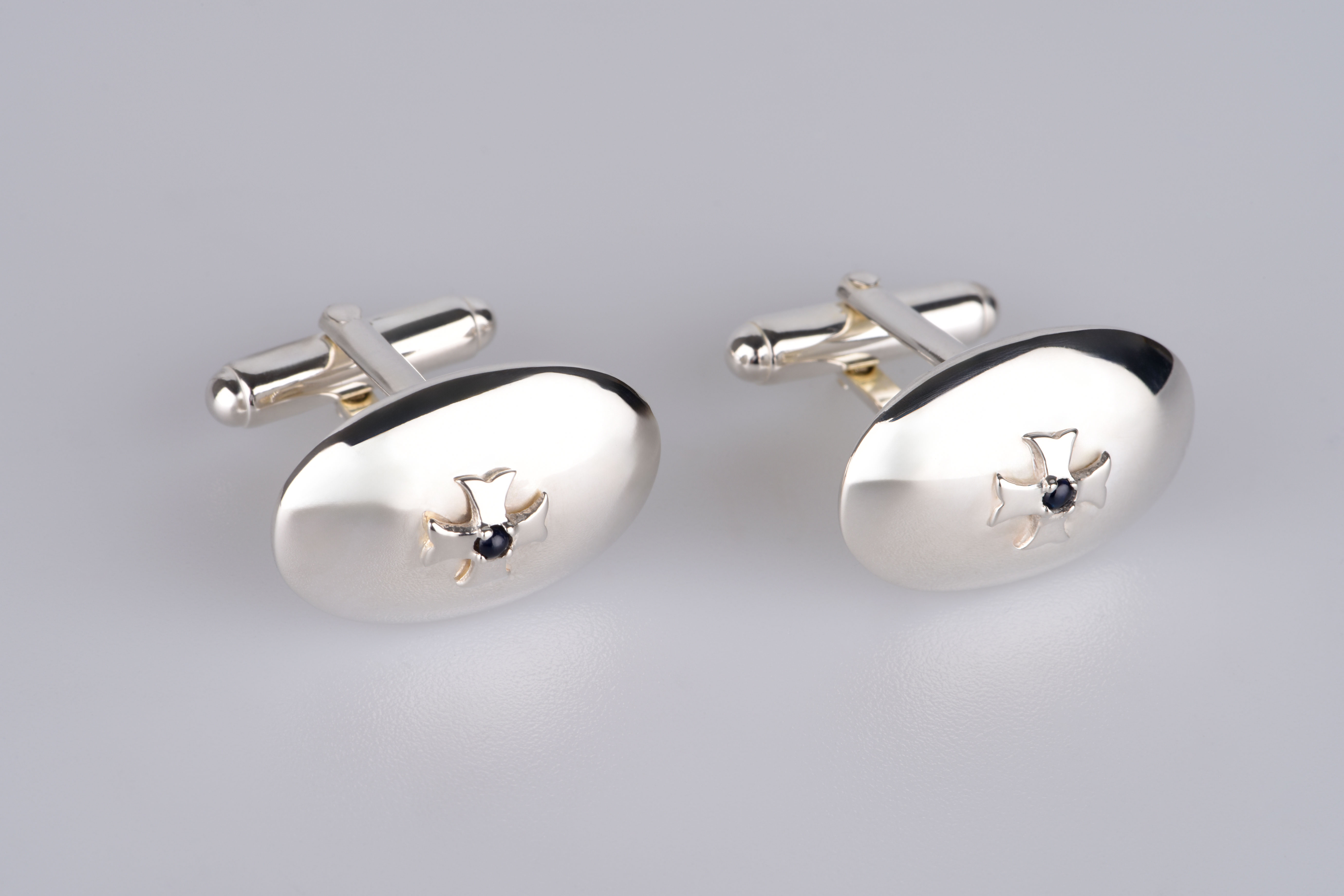 Gefertigt aus feinstem 925er Sterling Silber, strahlen diese ovalen Manschettenknöpfe nicht nur luxuriösen Glanz aus, sondern tragen auch die Seele echter Handwerkskunst in sich. Mit ihren Maßen von 2,5 x 1,6 cm und einem Gewicht von 11 Gramm schmiegen sie sich perfekt an Ihr Handgelenk, ohne aufzutragen – dezent, aber dennoch präsent.