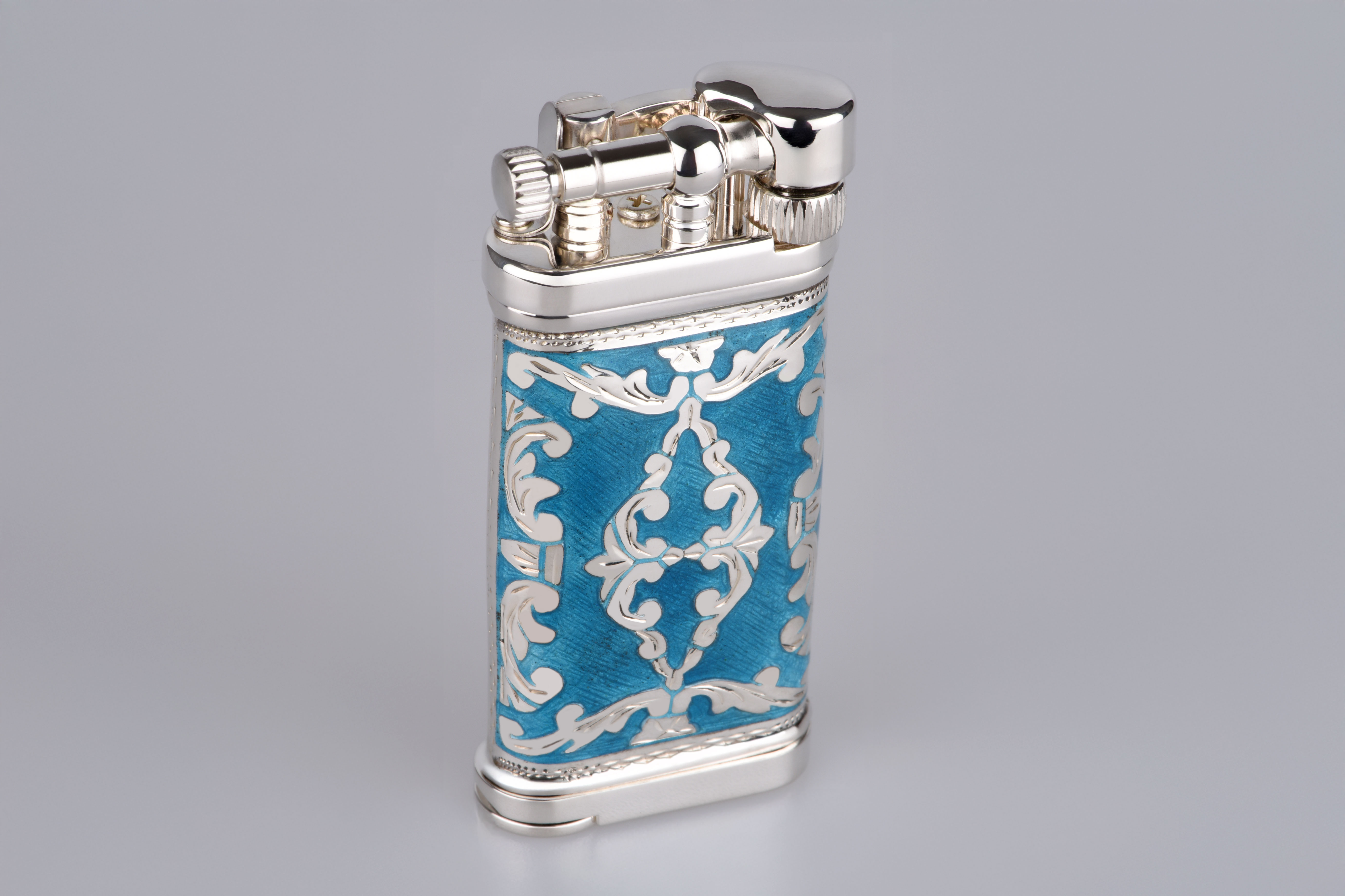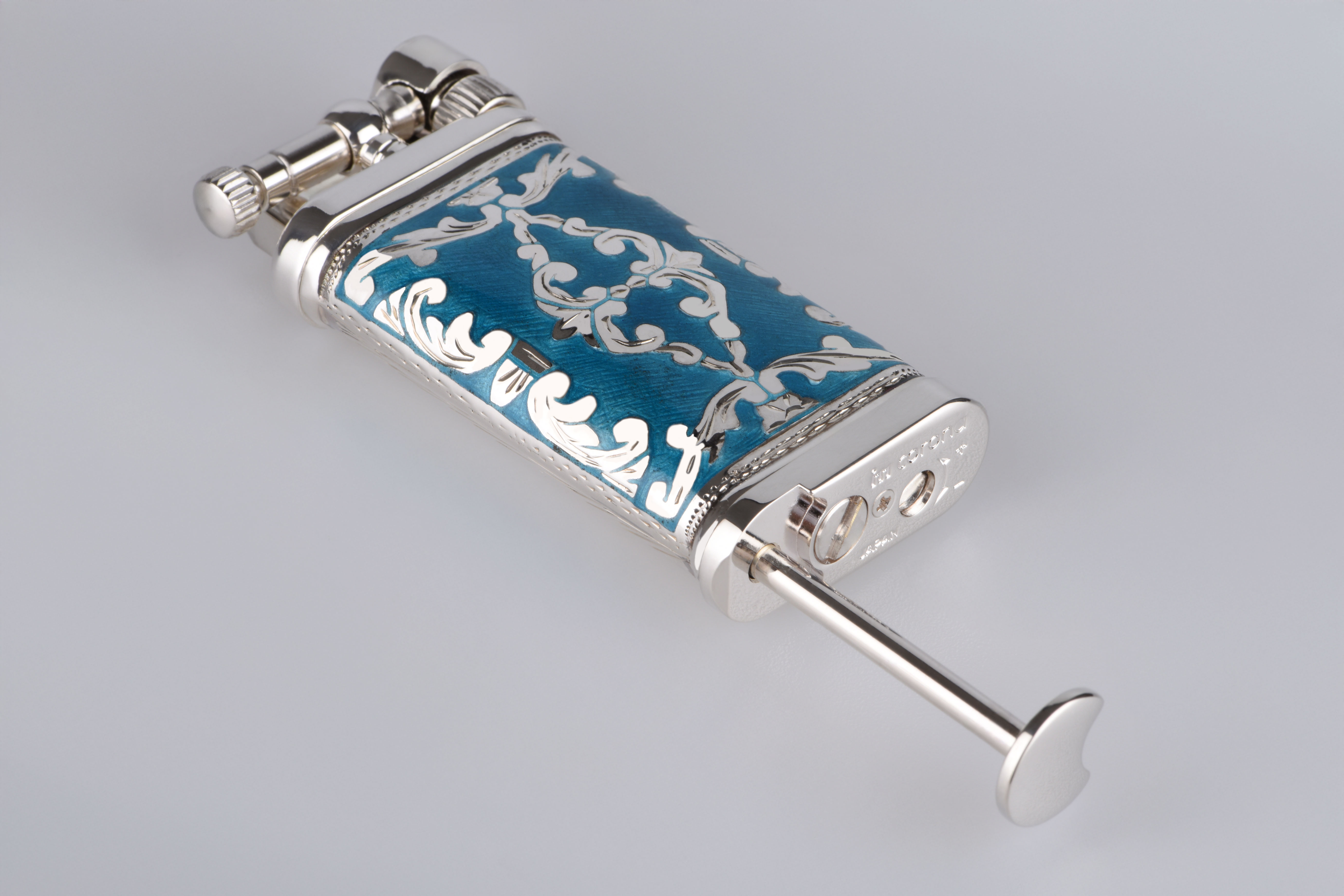 Die innere Mechanik stammt aus dem Hause Corona, starkversilbert und weltberühmt für ihre Zuverlässigkeit. Das präzise seitliche Zündrad, der drehbare Pfeifenstopfer, das liebevolle Klicken beim Öffnen des Deckels – jedes Detail spricht die Sprache der Perfektion. Mit einer Füllmenge von 3,3 Gramm bietet es Ihnen zahlreiche genussvolle Momente, ohne Unterbrechung, ohne Kompromisse.