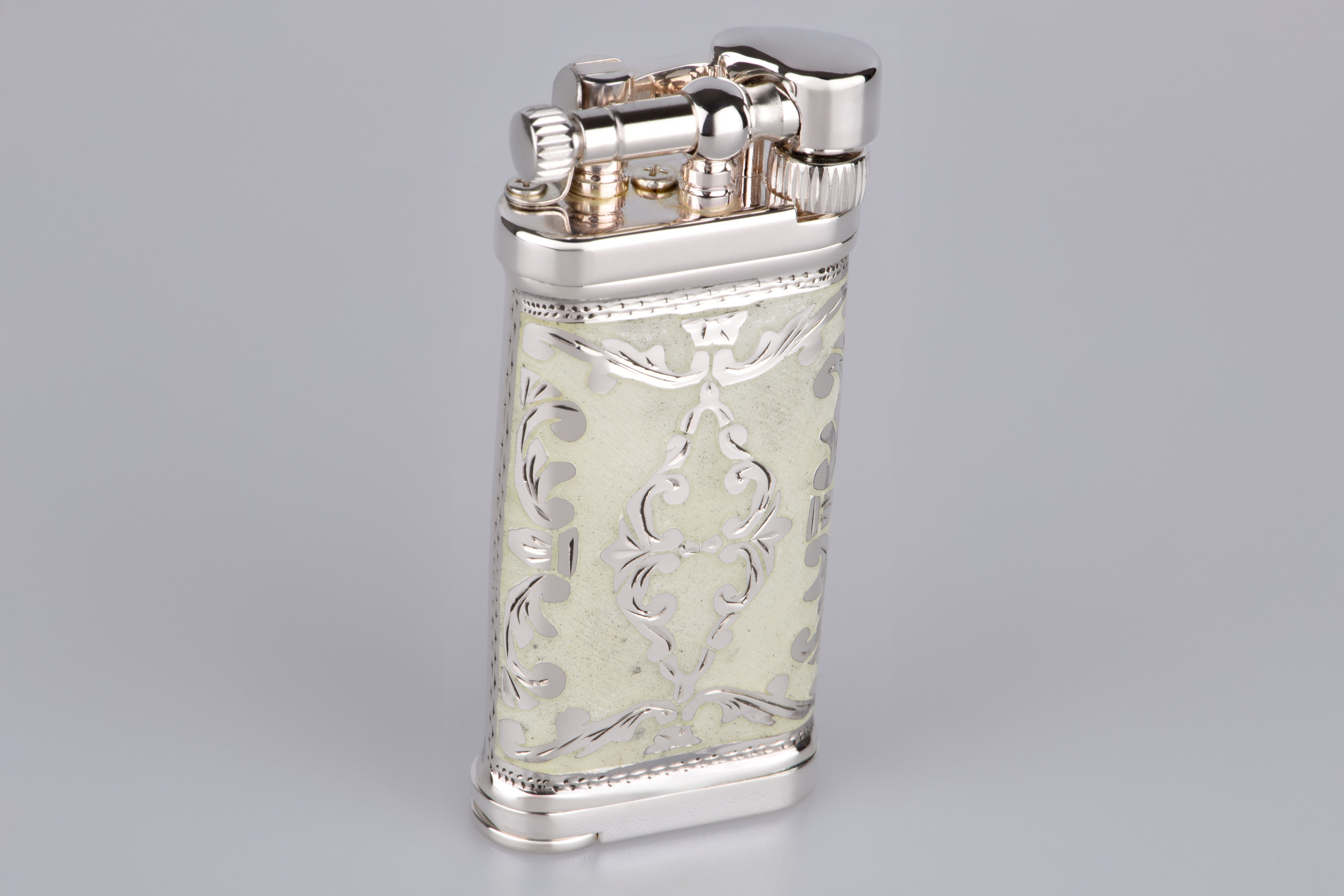 Gefertigt aus edlem 925er Sterling Silber, verbindet dieses Feuerzeug robusten Luxus mit einer unvergleichlichen Haptik. Die zarte Perlen-Emaille, die das Design ziert, verleiht dem Old Boy eine sanfte, fast mystische Aura, die jeden Blick fesselt und die Sinne berührt. Die kunstvolle Kombination aus glänzendem Silber und der feinen Emaille schafft eine harmonische Balance zwischen Tradition und zeitgenössischer Raffinesse.