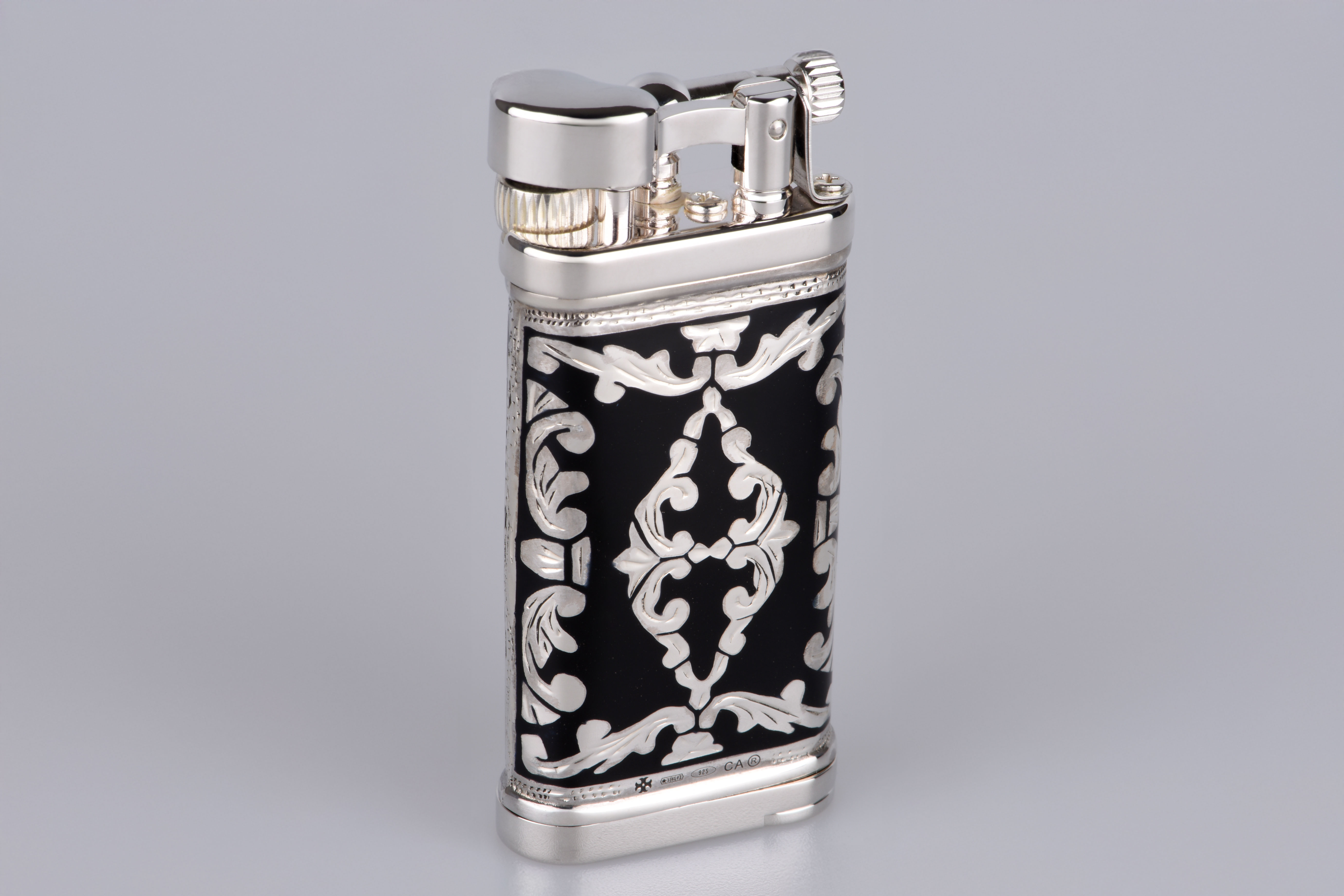 Gefertigt aus feinstem 925er Sterling Silber, verbindet das Old Boy LEA 2 Face die Eleganz eines kostbaren Schmuckstücks mit der Robustheit und Funktionalität eines perfekten Alltagsbegleiters. Die tiefschwarze Emaille auf der Oberfläche schafft einen faszinierenden Kontrast, der die Formensprache dieses Feuerzeugs auf ein neues Niveau hebt. Es fängt das Licht ein und spielt mit ihm – ein stilvolles Statement für Kenner und Liebhaber.