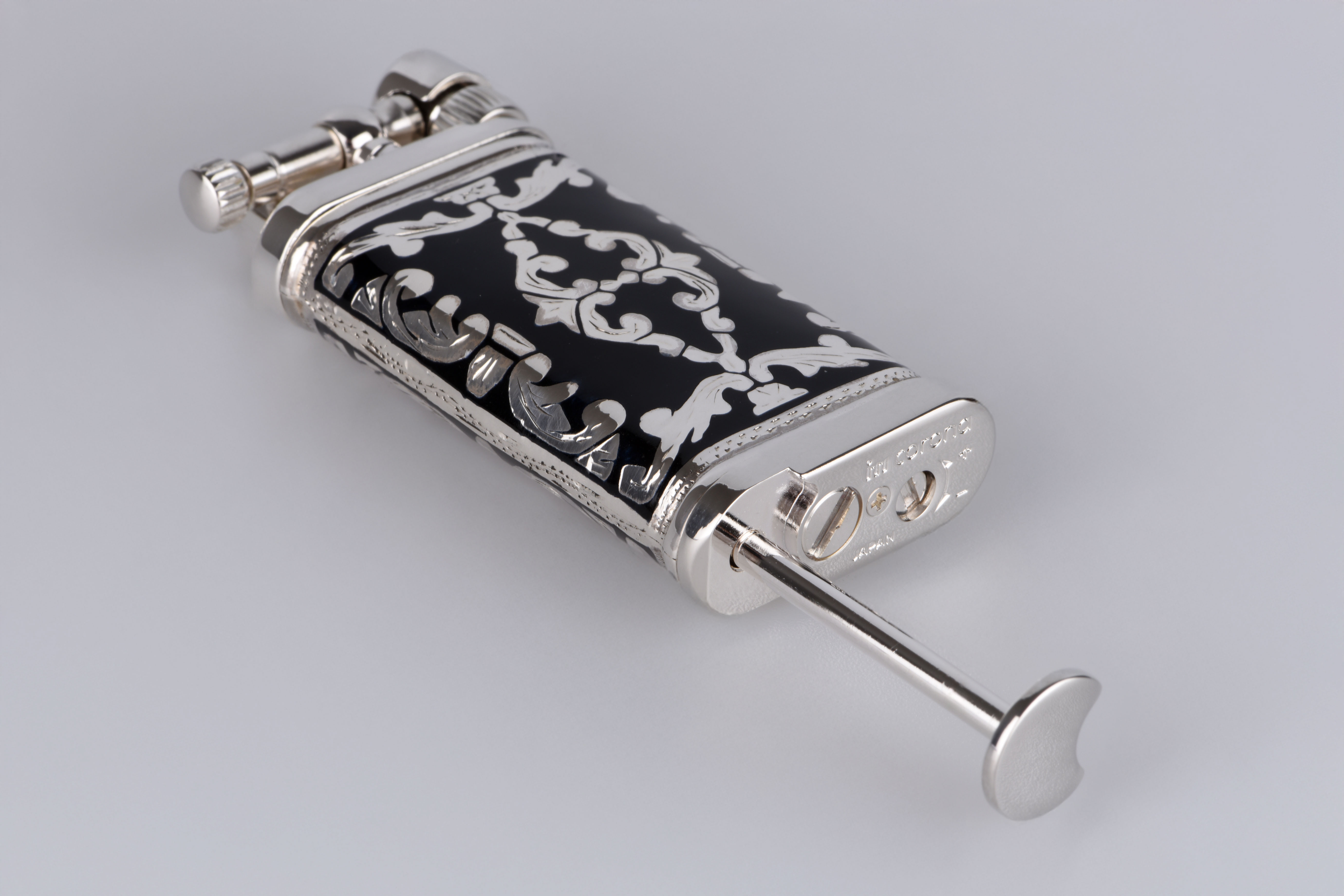 Im Inneren sorgt die Corona-Mechanik, stark versilbert, für zuverlässige Funktionalität und Präzision, die Sie bei jedem Anzünden spüren. Hier trifft jahrzehntelange Erfahrung auf feinste Technik – für ein Feuerzeug, das so langlebig ist wie die Leidenschaft für den perfekten Tabakgenuss.