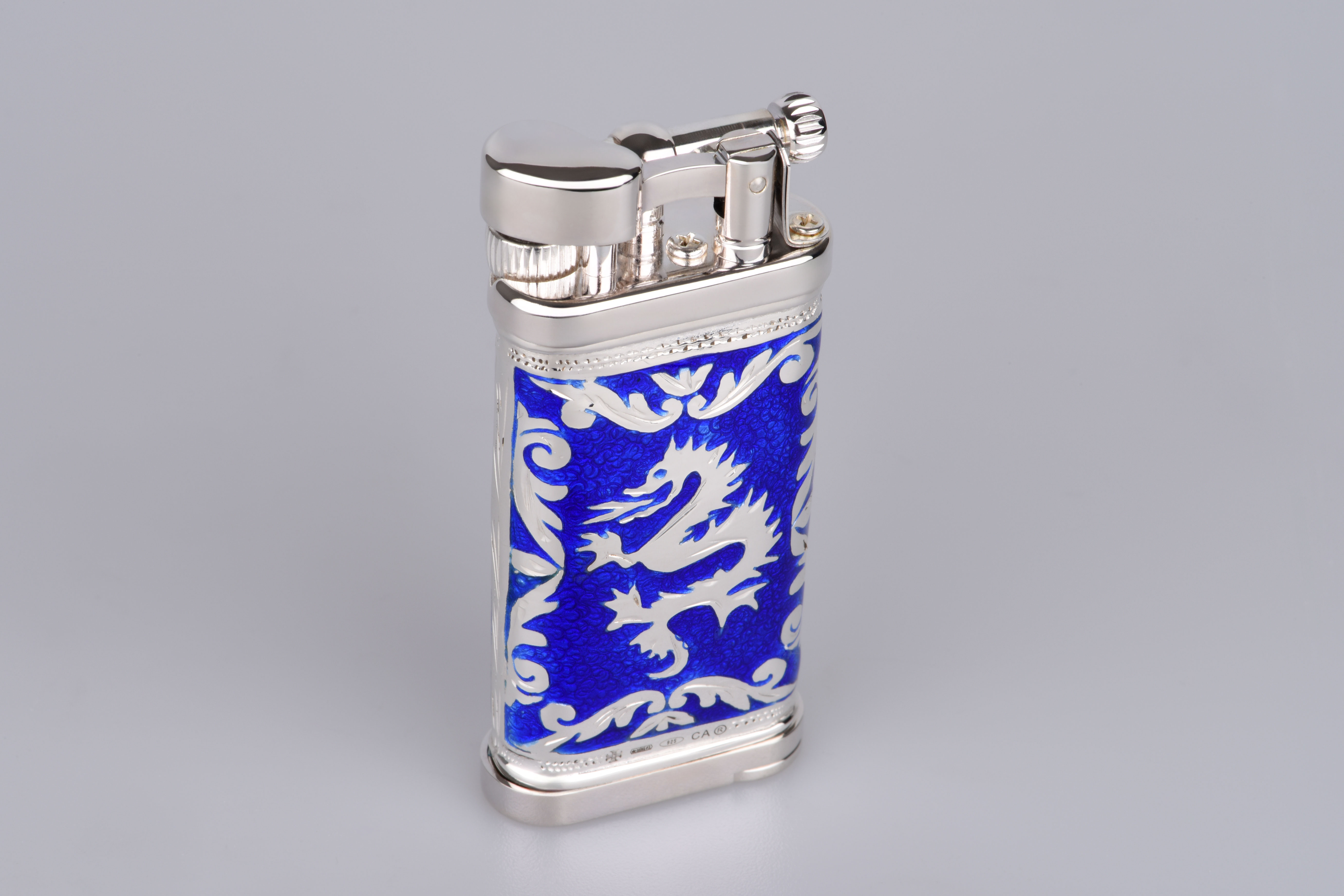 Gefertigt aus edlem 925er Sterling Silber, veredelt mit tiefblauer Emaille und geprägt durch das doppelte Drachenmotiv, verkörpert dieses Feuerzeug zeitlose Noblesse. Jeder Blick auf das fein gearbeitete Drachenrelief lässt Geschichten von Mythen, Macht und Magie lebendig werden – ein Hauch fernöstlicher Mystik trifft auf europäische Handwerkskunst in vollendeter Form.