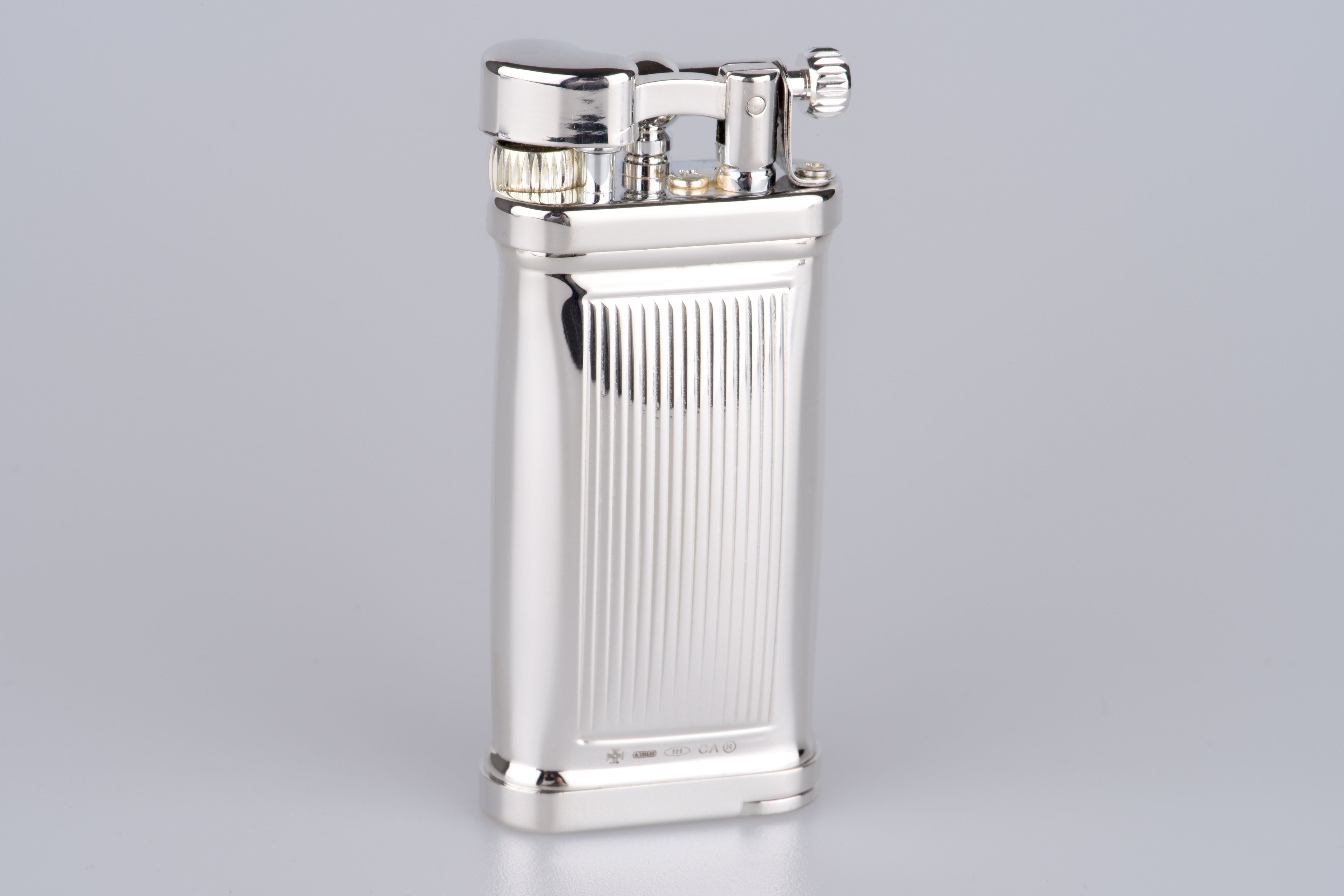 Gefertigt aus edlem 925er Sterling Silber, verziert mit einer feinen, klassischen Streifenstruktur, liegt dieses Feuerzeug nicht einfach nur in der Hand – es ruht darin. 6,5 x 3 cm kompakte Noblesse, mit einem Gewicht von 85 Gramm, das die Substanz und Wertigkeit spürbar macht. Hier klappert nichts. Hier schließt sich jede Linie mit Präzision und Stolz.