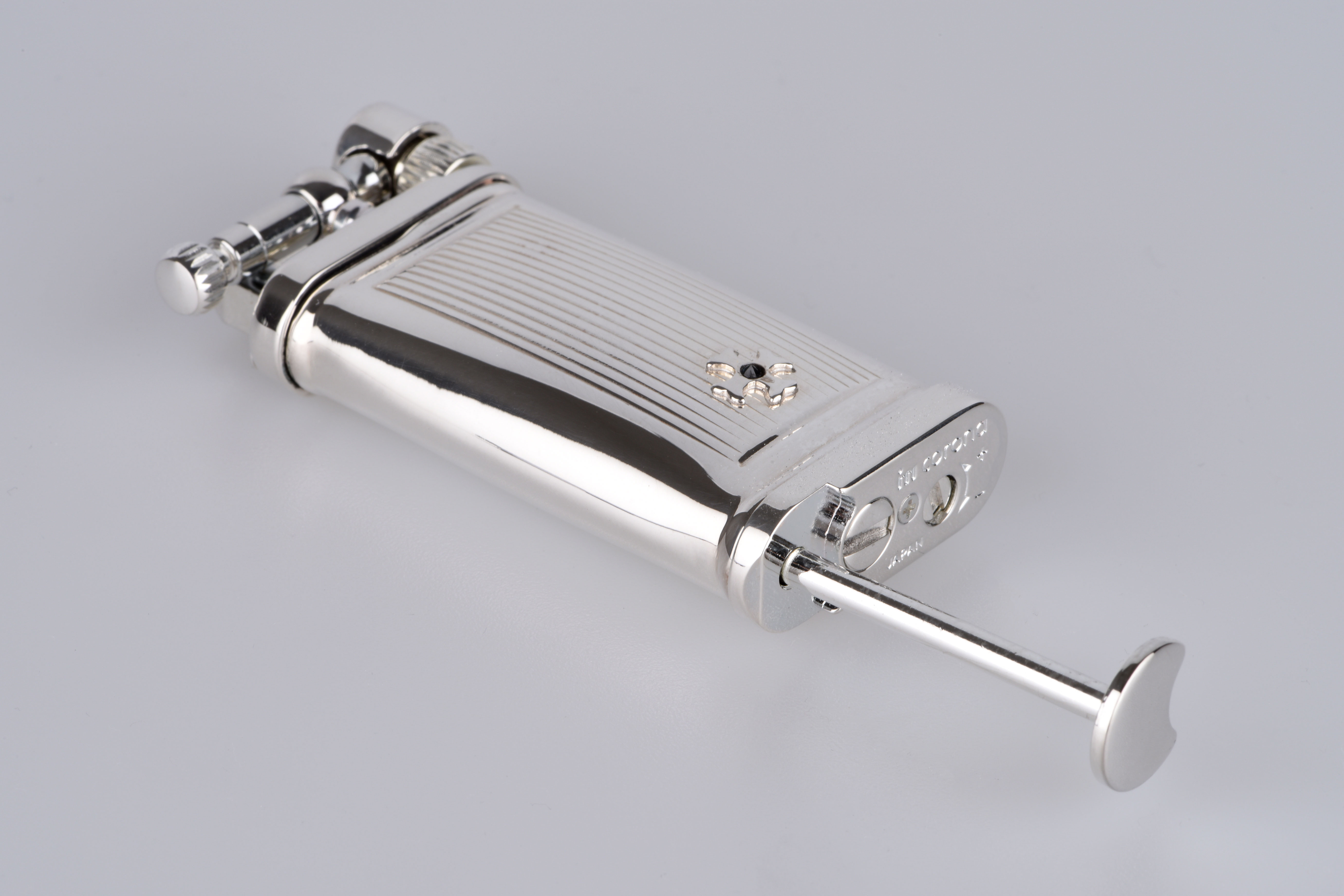 Die Mechanik stammt aus dem Hause Corona, starkversilbert und berühmt für ihre Zuverlässigkeit. Mit einem sanften Dreh und einem leisen Klicken erwacht das Feuer zum Leben – kein hektisches Zünden, kein schnelles Verpuffen. Sondern ein ruhiges, gezieltes Flammenbild, das die Pfeife wie ein Ritual entfacht. 3,3 Gramm Füllmenge genügen für viele genussvolle Momente – Momente, in denen der Alltag schweigt und die Zeit stillzustehen scheint.