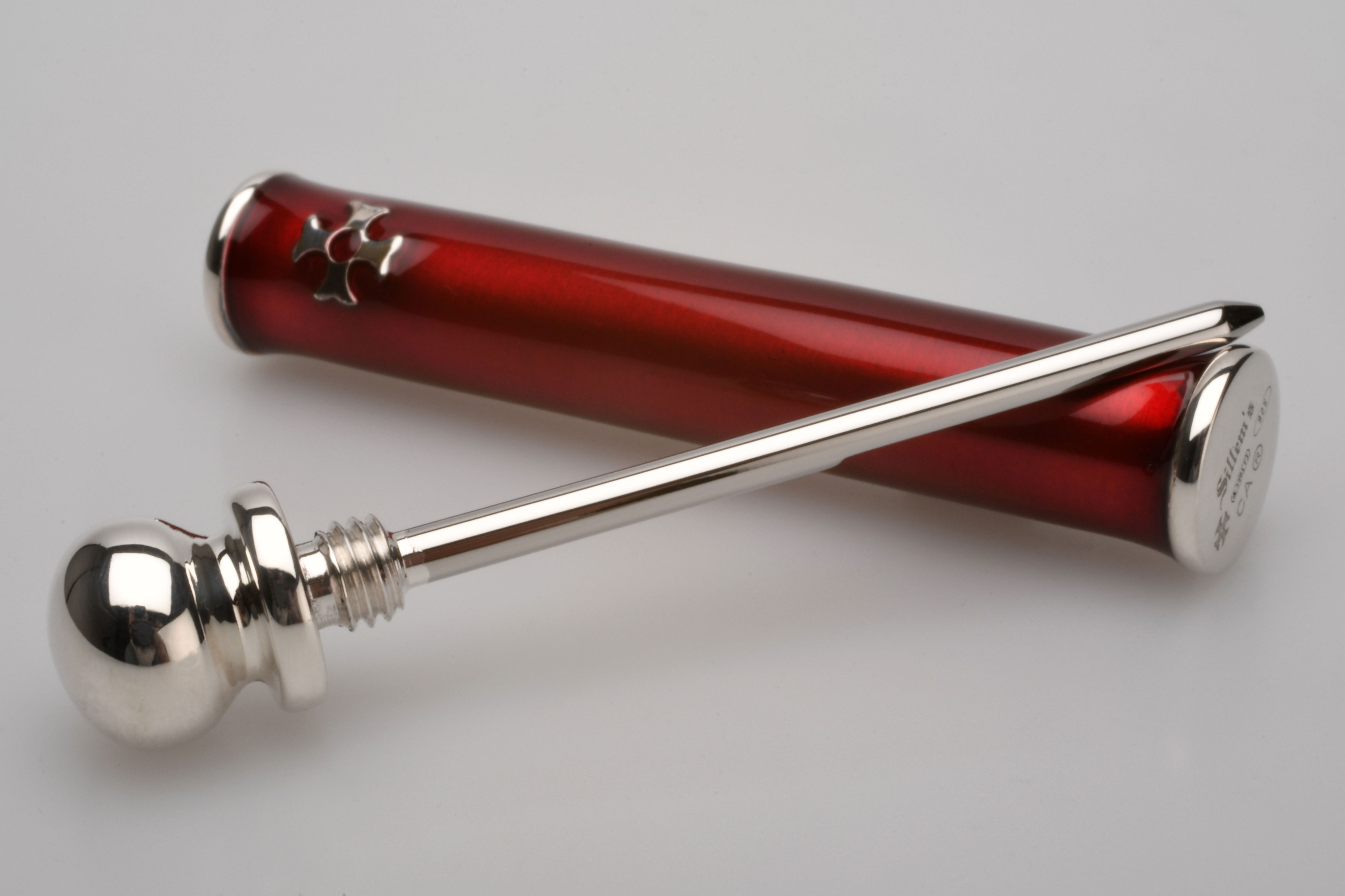 Sillem’s Pfeifenstopfer mit Dorn – Ein Meisterwerk aus Sterling Silber und roter Emaille