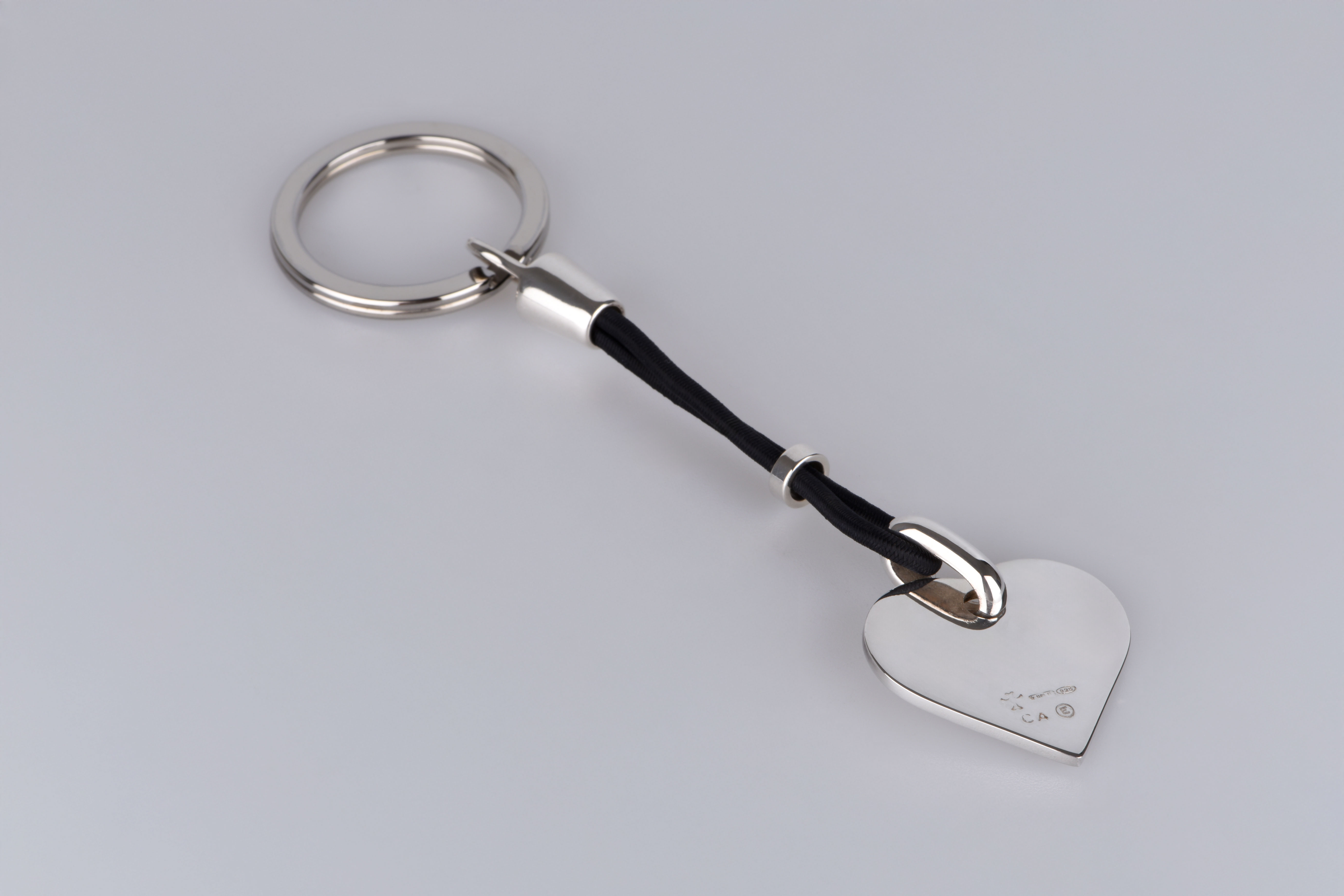 Das stabile Flexiband in stilvollem Kontrast sorgt für Funktionalität und Langlebigkeit. Es hält, was zusammengehört – Schlüssel, Erinnerungen, kleine Glücksbringer – und macht den Anhänger zum verlässlichen Begleiter in allen Lebenslagen. Der hochwertige Silberring vollendet das Ensemble mit klassischer Form und sicherem Halt.