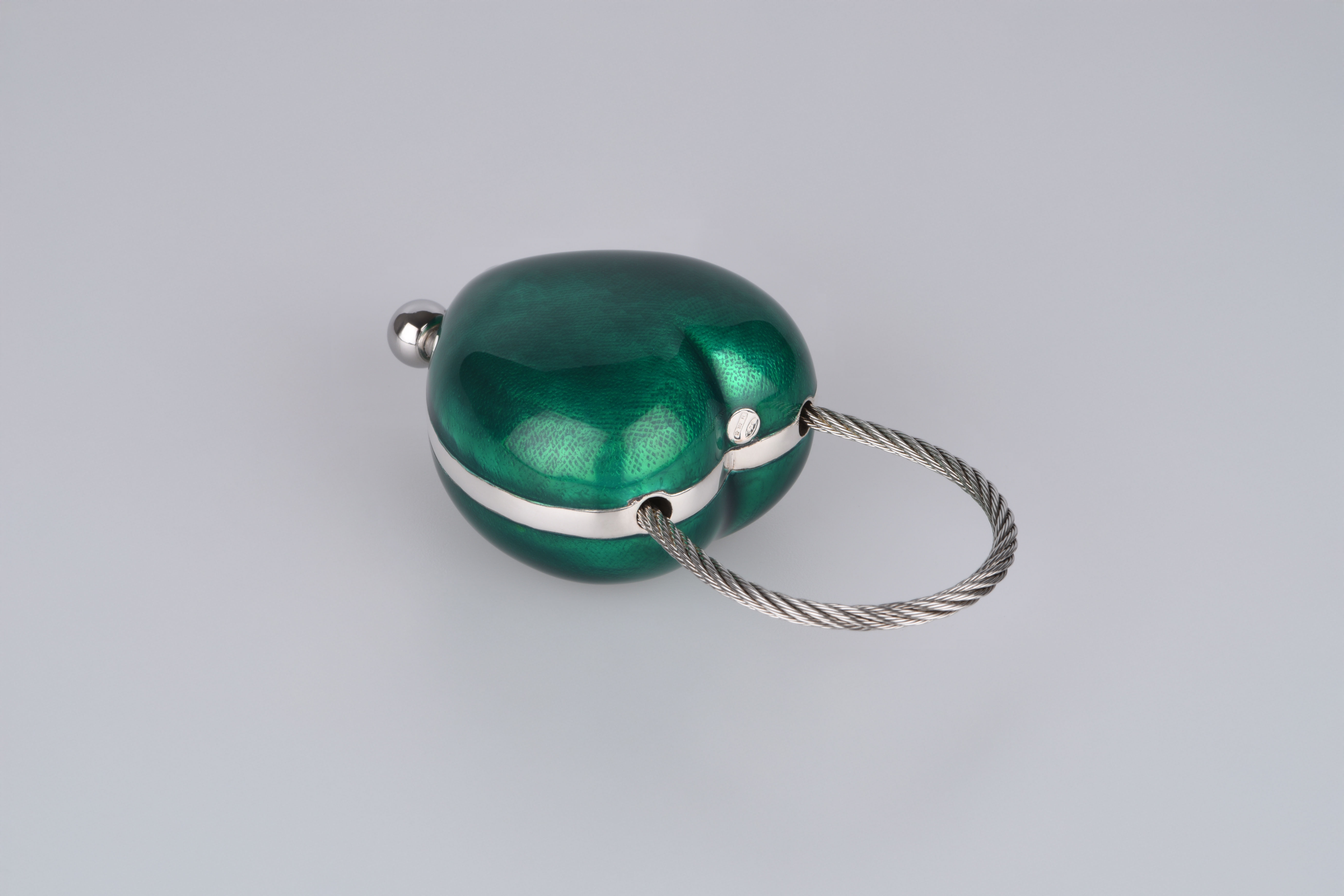Die Oberfläche ist mit einer hochwertigen grüner Emaille veredelt, die dem Anhänger eine zeitlose Tiefe und exklusive Ausstrahlung verleiht. Das harmonische Zusammenspiel aus Glanz und Struktur schafft eine faszinierende Balance zwischen Klassik und Moderne.