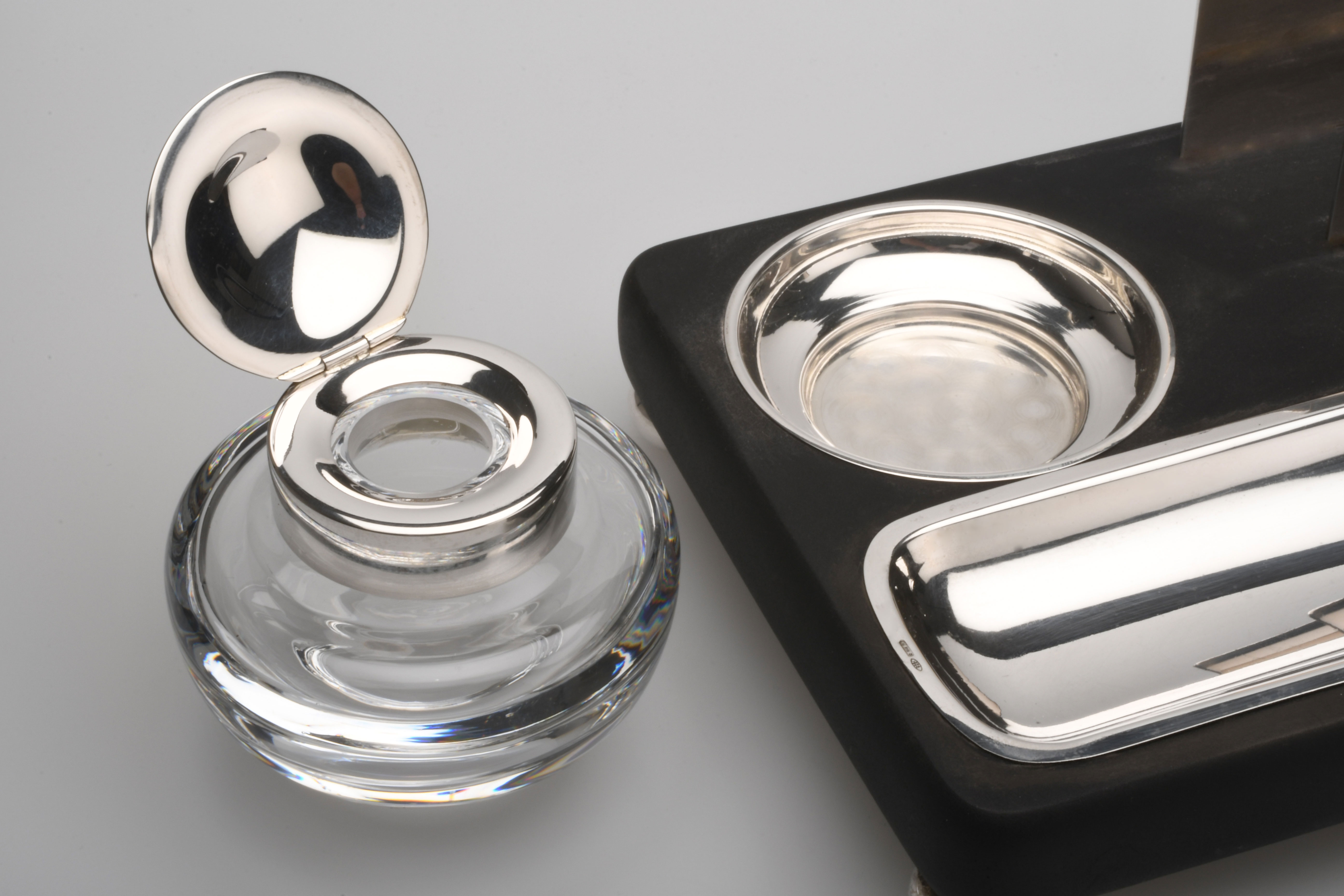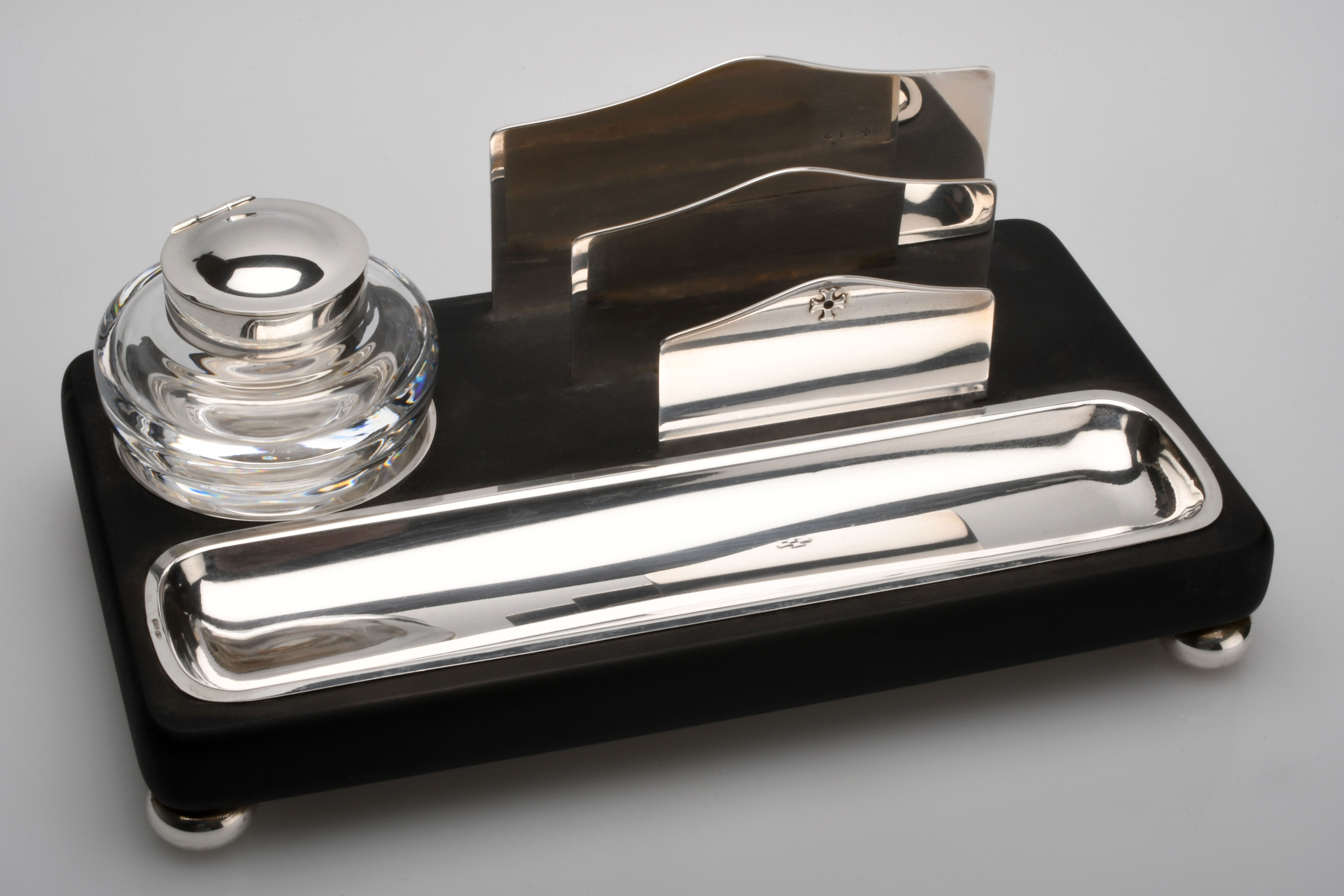 Sillem´s Schreibtischset mit Kristallfass – Ein Meisterwerk aus Sterling Silber