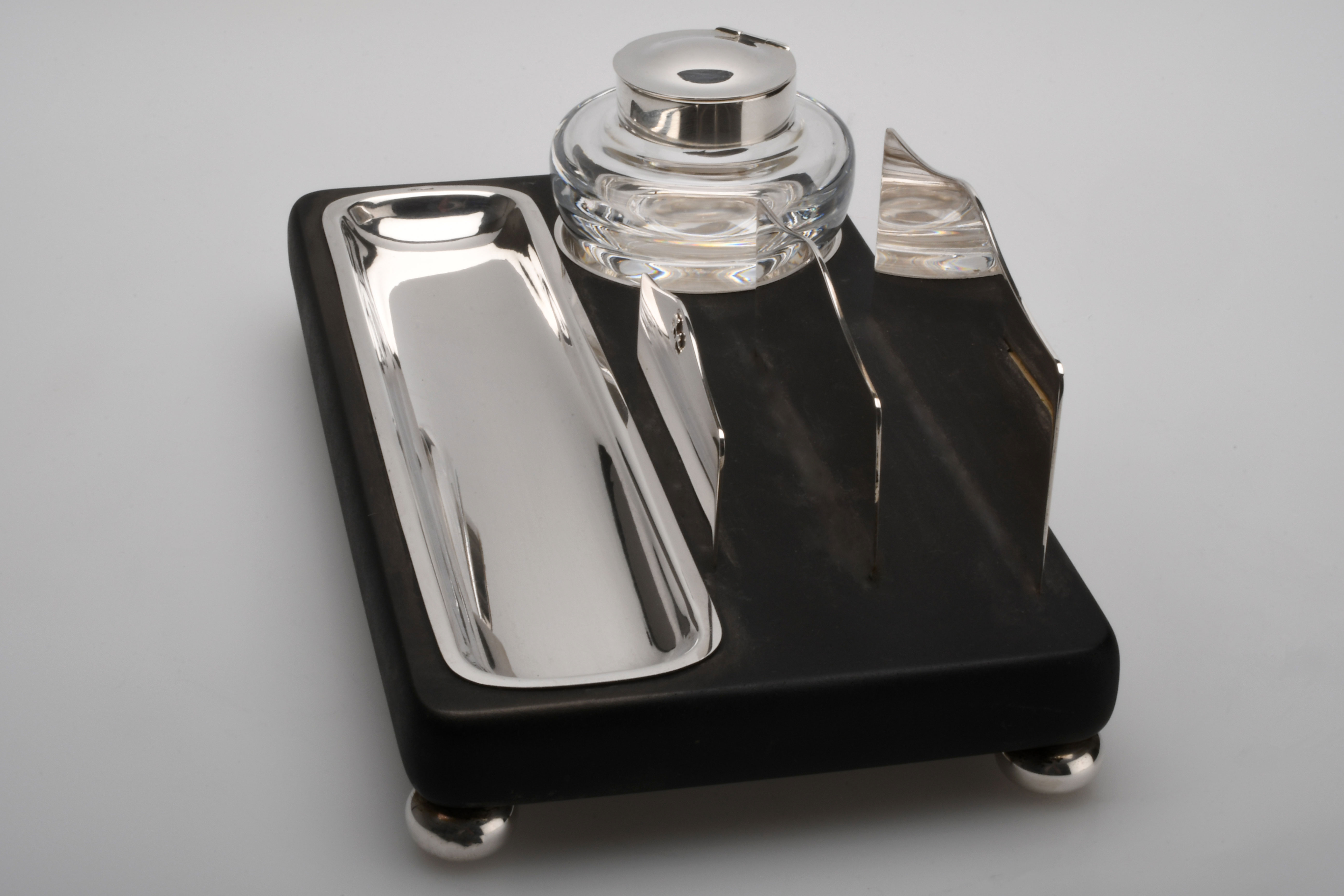 Entdecken Sie die Magie, die entsteht, wenn edle Materialien und meisterhaftes Design aufeinandertreffen – mit Sillem´s Schreibtischset mit Kristallfass in Sterling Silber.