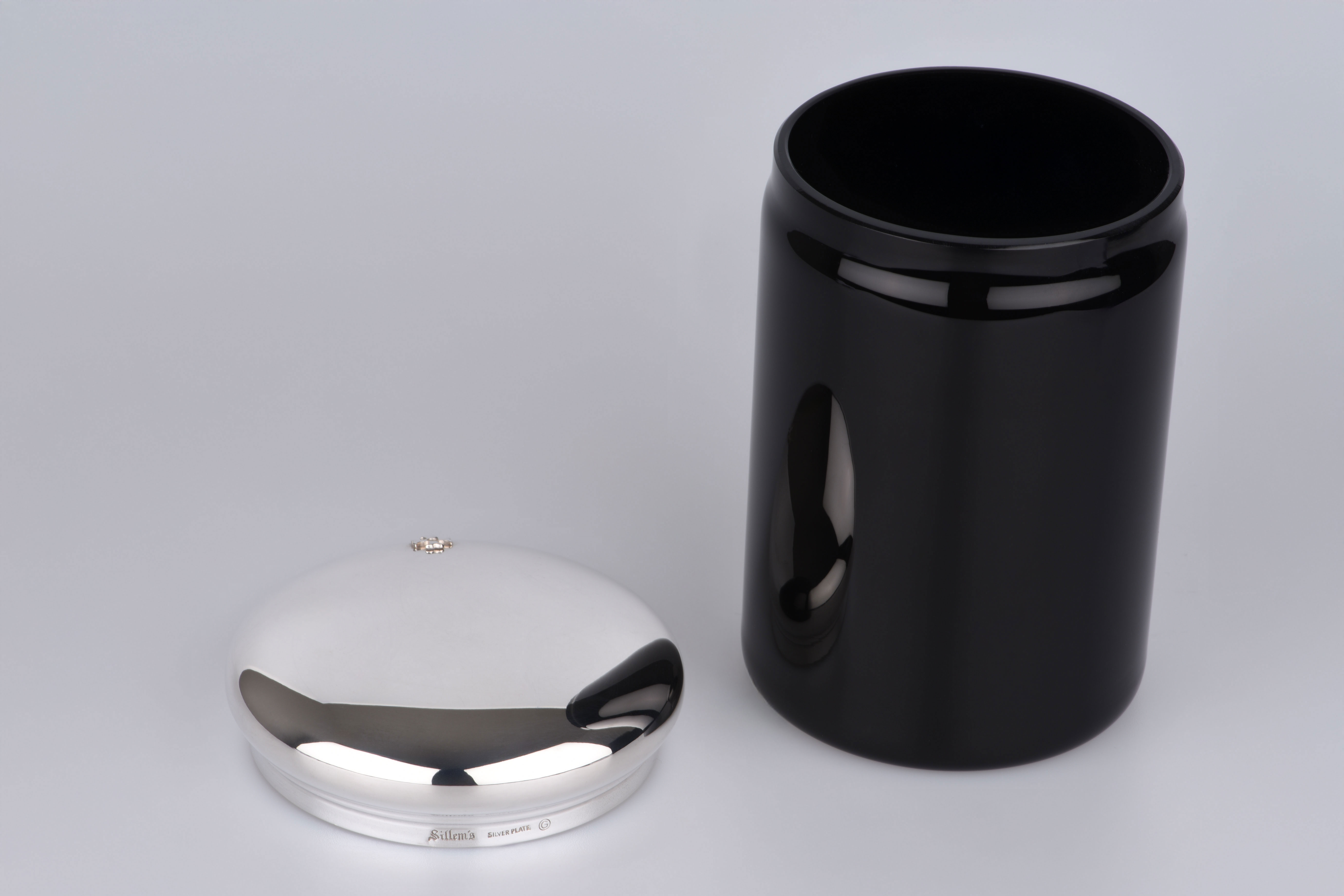 Sillem’s Exklusive Tabakdose – Schwarzes Glas & Versilberter Deckel