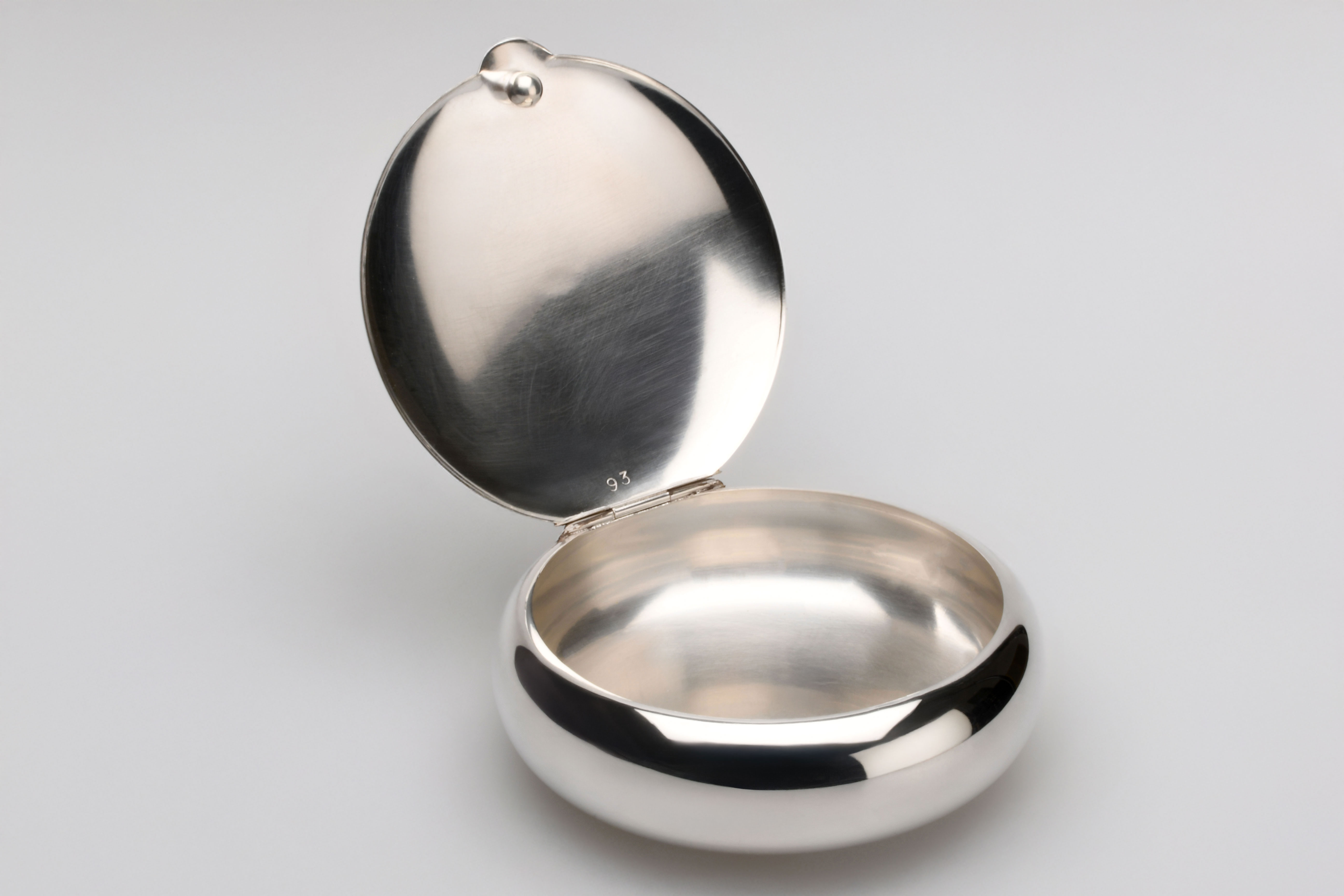 Mit einem Durchmesser von 9 cm und einem Gewicht von 112 Gramm vereint diese meisterhaft gearbeitete Dose klassische Handwerkskunst mit luxuriöser Substanz. Jeder Millimeter zeugt von höchster Präzision und Liebe zum Detail – das matte Silber reflektiert nicht nur das Licht, sondern auch Ihre Persönlichkeit: dezent, elegant, einzigartig.