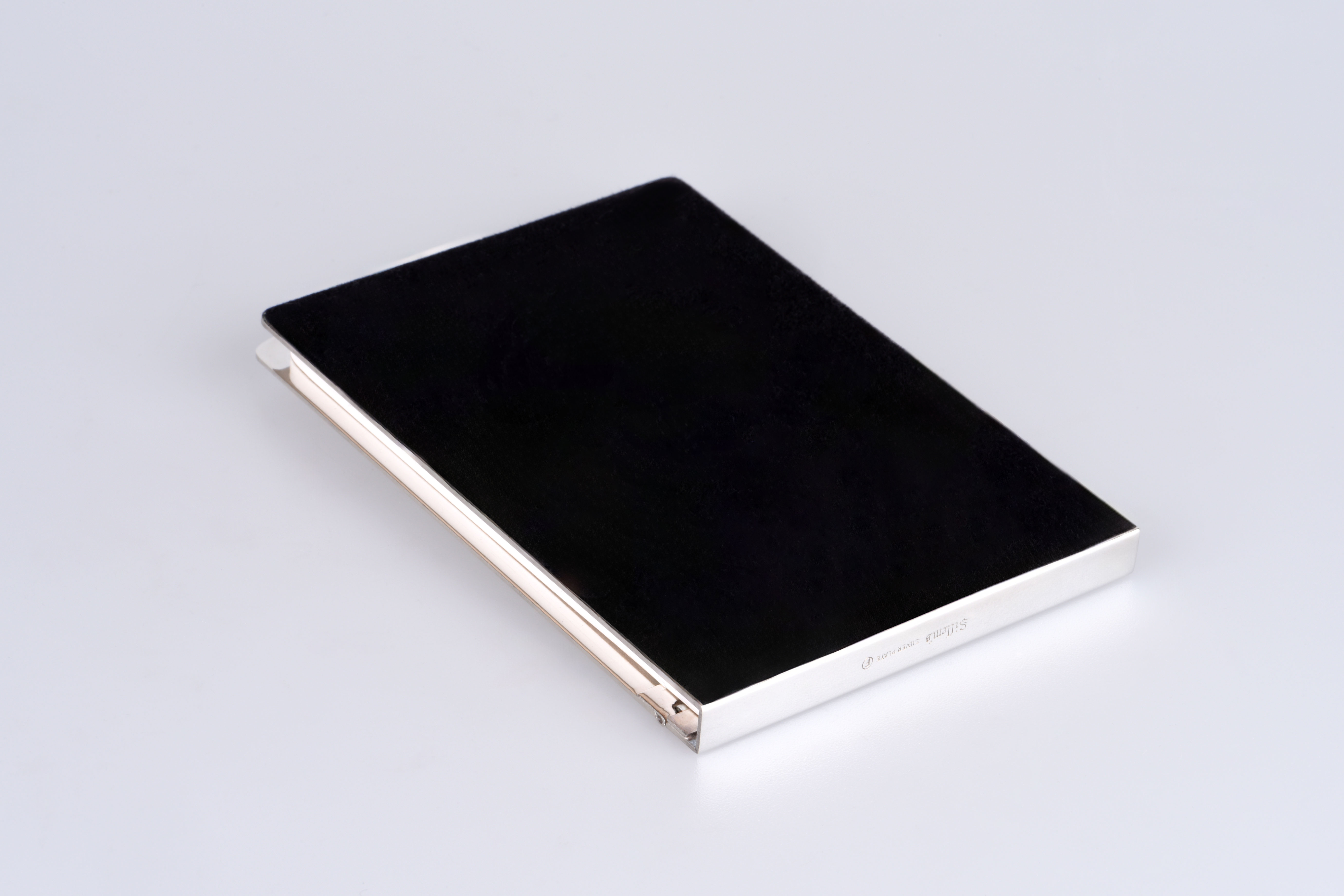 In einer Welt, die von Eile und digitalen Kurzmitteilungen geprägt ist, lädt dieser Schreibblock dazu ein, innezuhalten. Gedanken, Einfälle, Namen oder Botschaften – alles, was Ihnen wirklich wichtig ist – findet hier seinen angemessenen Platz. Die kalte, klare Schönheit des versilberten Gehäuses fasst Ihre Worte mit Würde. Jeder Zettel, den Sie entnehmen, scheint beinahe ein kleines Zeremoniell zu sein.