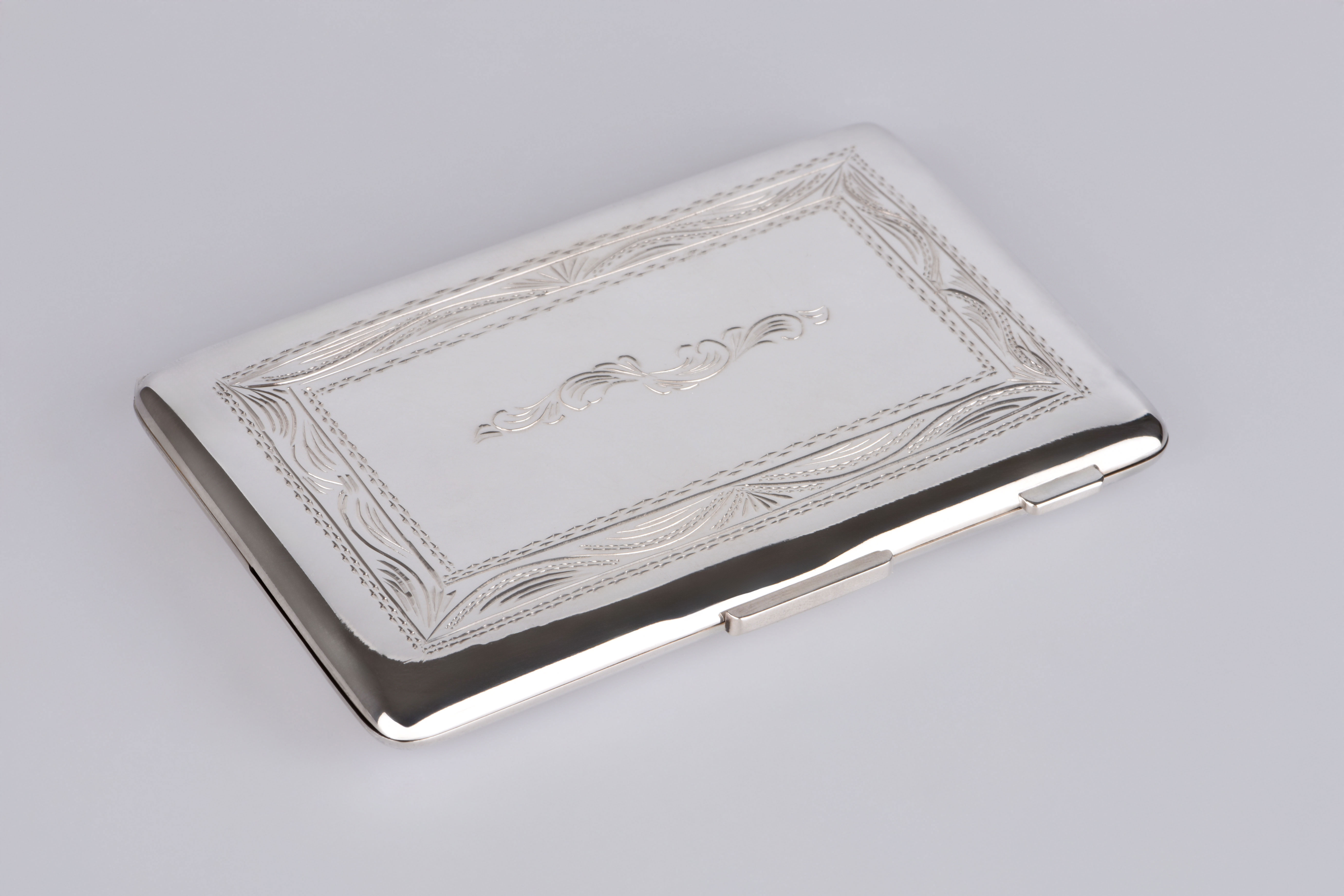 Gefertigt aus feinstem 925er Sterling Silber und veredelt durch eine elegante schwarze Emaille, vereint dieses handgravierte Etui meisterhafte Handwerkskunst mit zeitloser Ästhetik. Jedes einzelne Detail wurde mit Liebe und Präzision gestaltet, um nicht nur Ihre Visitenkarten zu schützen, sondern auch Ihre Individualität und Ihren Anspruch an Qualität sichtbar zu machen.