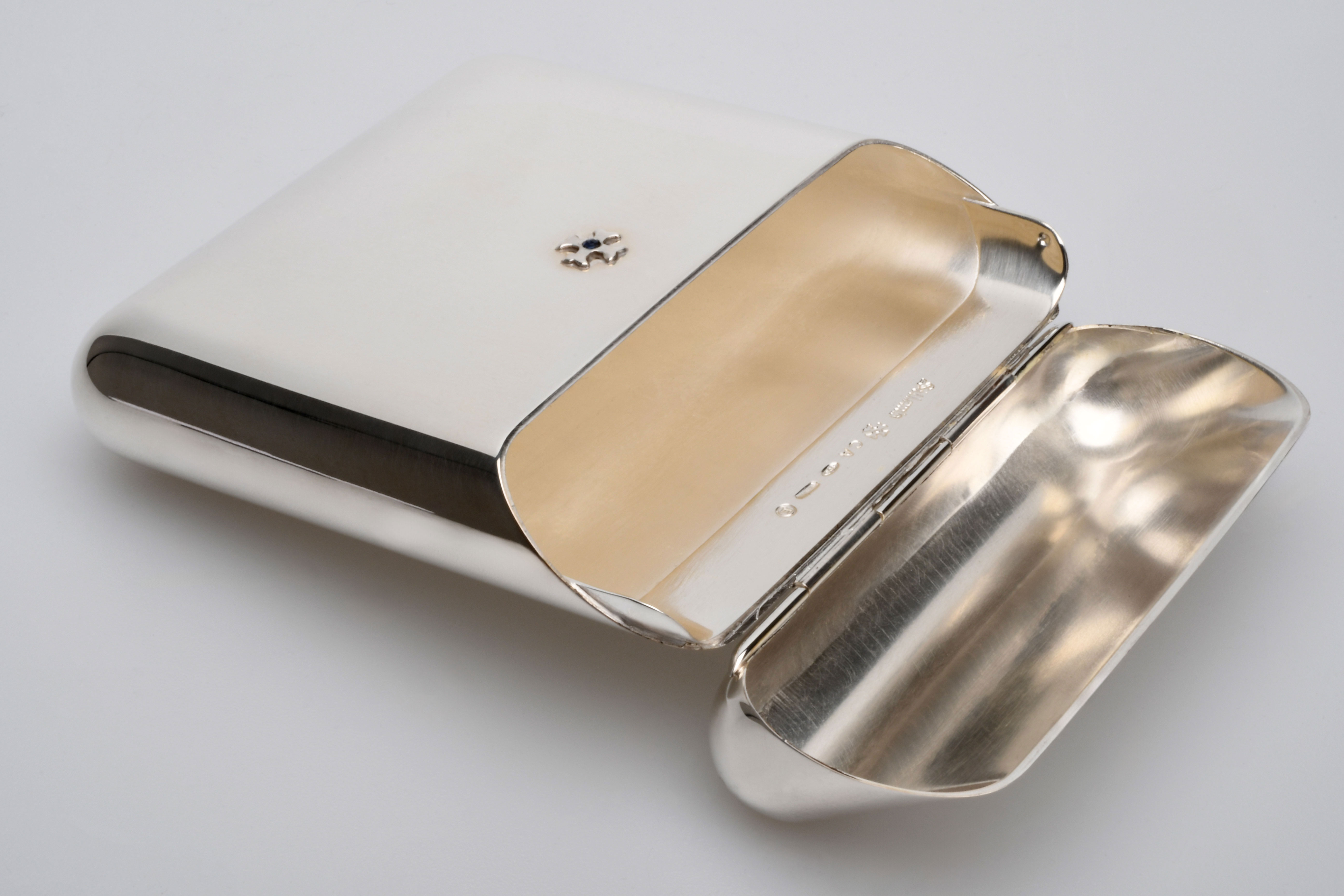 Das hochwertige Silber zeigt mit jedem Gebrauch mehr von seiner Persönlichkeit. Mit der Zeit erhält es eine Patina, die Geschichten erzählt – von Nächten in rauchgeschwängerter Luft, von Begegnungen, von Momenten der Ruhe und Reflexion. Jeder Griff zu diesem Etui ist ein kleines Ritual, das die Schnelllebigkeit des Alltags für einen Augenblick aufhält.