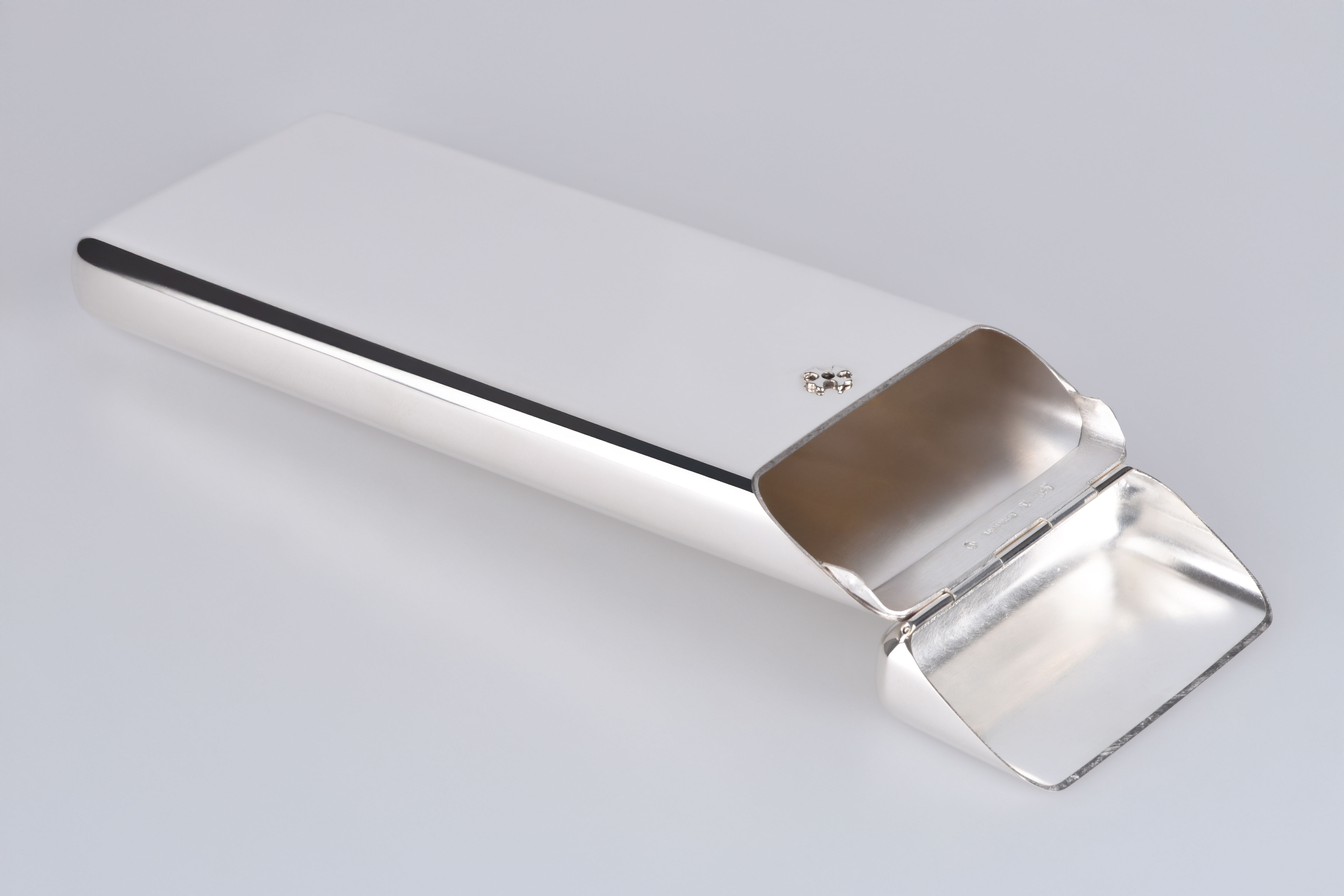 Das Etui besticht durch sein schlankes, handliches Design und bietet dennoch ausreichend Platz für Ihre Zigarillos. Die Silverplated-Oberfläche verleiht ihm einen luxuriösen Glanz, der die Sinne anspricht und das Genusserlebnis stilvoll begleitet.