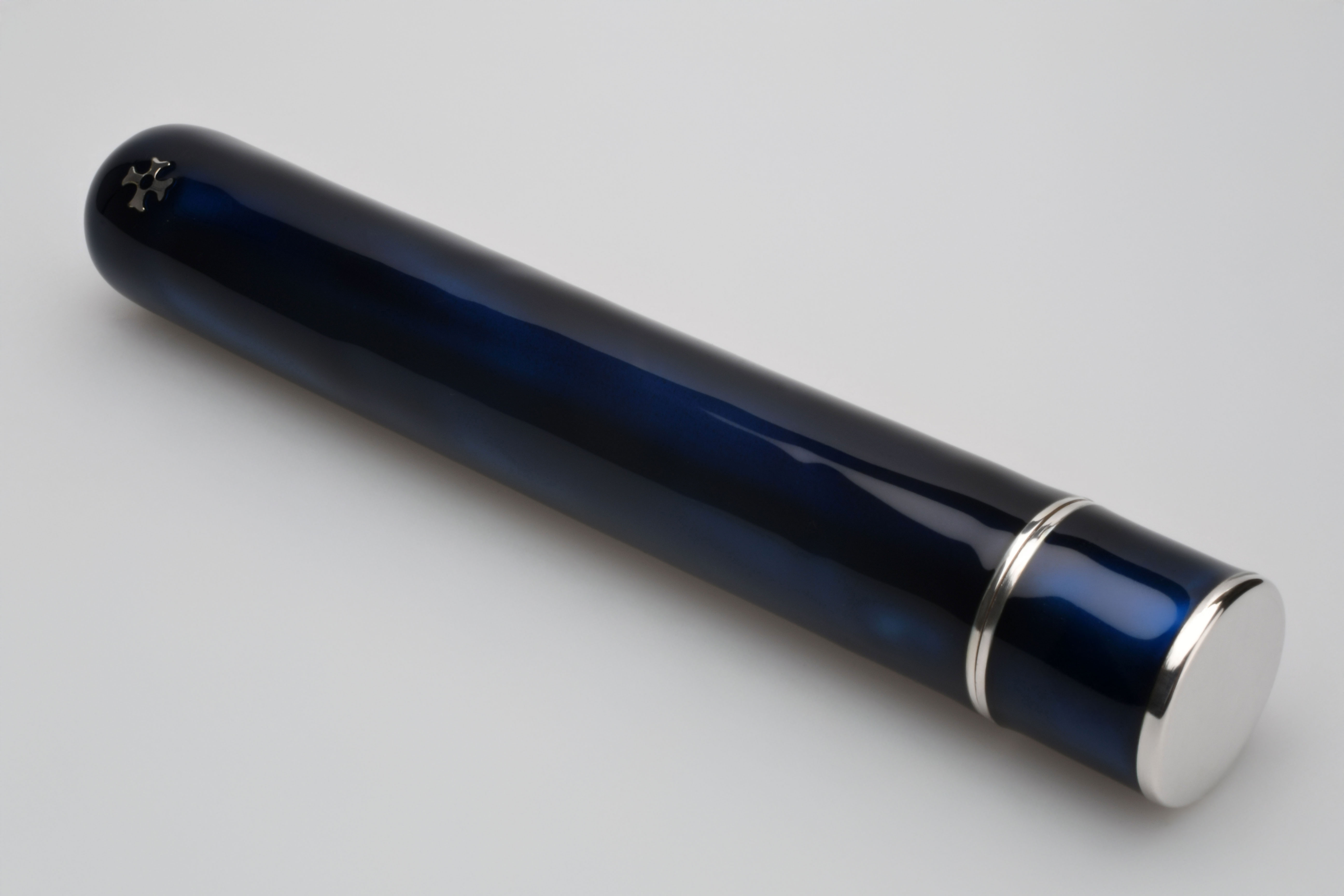 Gefertigt aus feinstem 925er Sterling Silber, besticht die Röhre durch ihre edle Ausstrahlung und das angenehme Gewicht von 87 Gramm, das sich hochwertig und wertvoll anfühlt. Die kühle Haptik des Silbers wird harmonisch ergänzt durch die kunstvolle blaue Kaltemaille, die dieser Zigarrenröhre nicht nur einen lebendigen Farbakzent verleiht, sondern auch ihr einen Hauch von Individualität und Persönlichkeit verleiht.